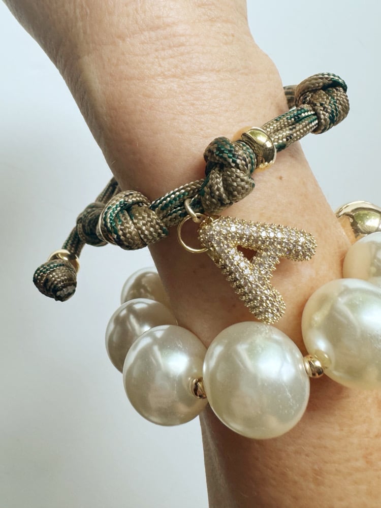 Adjustable paracord with 18k gold plated CZ initial.